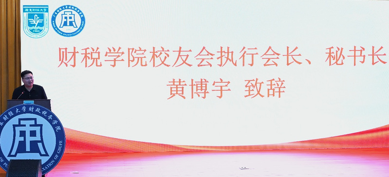 财税学院校友会执行会长、秘书长、广州昀道企业管理咨询有限公司董事长黄博宇在大会上讲话