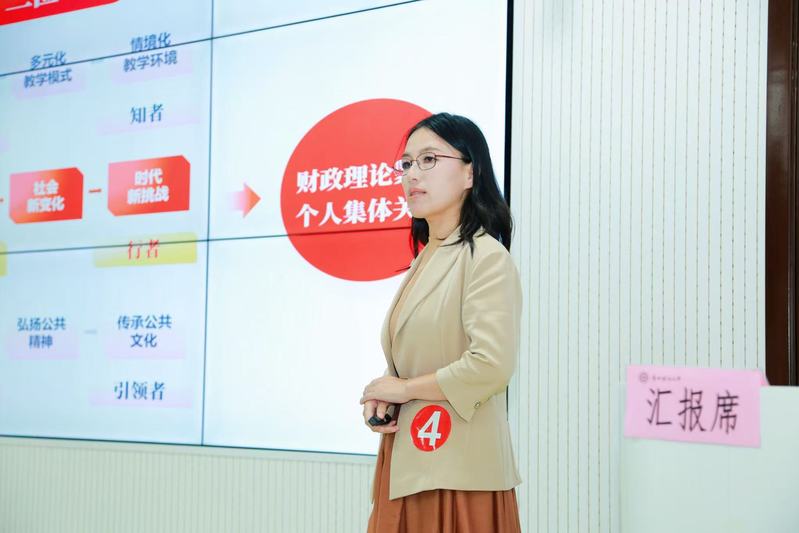 比赛设有说课、讲课和答辩三个环节,全面考察教师的教学能力与专业素养。朱翠华副教授凭借扎实的专业功底和独特的设计思路,在复赛环节脱颖而出,顺利晋级决赛。在决赛环节,她以“何为财政?”“为何理财?”等贴近生活的问题为切入口,生动阐释财政学内涵,通过联系管子财政思想和新时代财政观,展现课程思政育人魅力,令人印象深刻。在答辩环节,她沉着应对评委提问,凭借深厚专业知识和清晰表达,赢得评委们的高度认可。