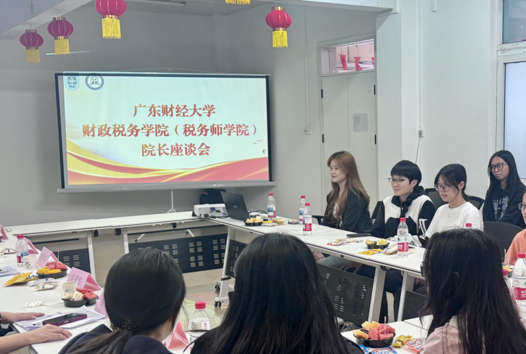 2025年11月25日下午,财政税务学院院长座谈会于佛山校区杏园活动室召开,院长李林木、副院长朱翠华,党委副书记梁珊珊,系主任张霄、副主任姜群,辅导员陈威廷及学生代表出席本次座谈会。