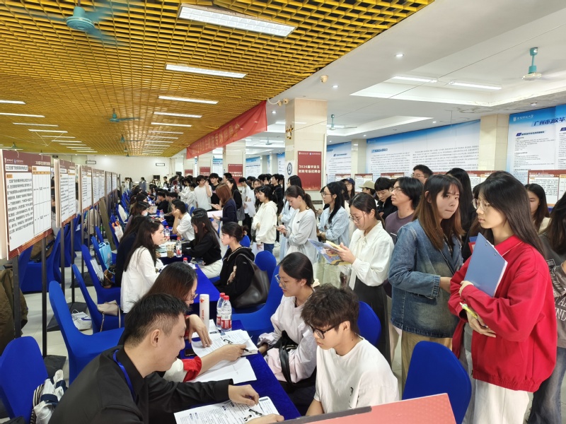 3:招聘会现场,毕业生有序排队投递简历