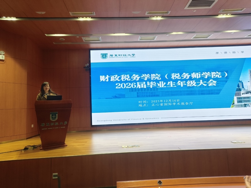 为扎实推进2026届毕业生就业创业指导服务工作,切实提升毕业生就业竞争力与学术论文写作水平,12月16日,财政税务学院(税务师学院)于广州校区图书馆正心堂国际学术报告厅召开2026届毕业生就业创业工作大会暨学术论文规范性写作辅导会。学院党委书记刘文基、党委副书记梁珊珊、副院长朱翠华、财政系主任于井远,毕业班辅导员黄迪、彭莹莹及全体2026届毕业生齐聚一堂,共话就业发展与学术提升。会议特别邀请2005届校友张皓分享实践经验。会议由梁珊珊主持。