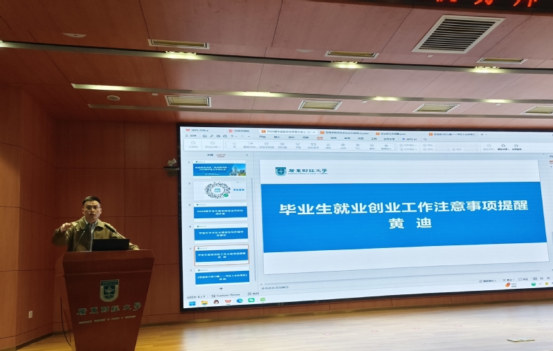 黄迪首先强调了信息渠道畅通的重要性,提醒毕业生密切关注班级群通知。在政策解读环节,他针对应届生身份界定问题进行重点阐释。同时,他还细致讲解了就业信息填报的具体流程及注意事项,为毕业生顺利办理就业手续提供了清晰指引。