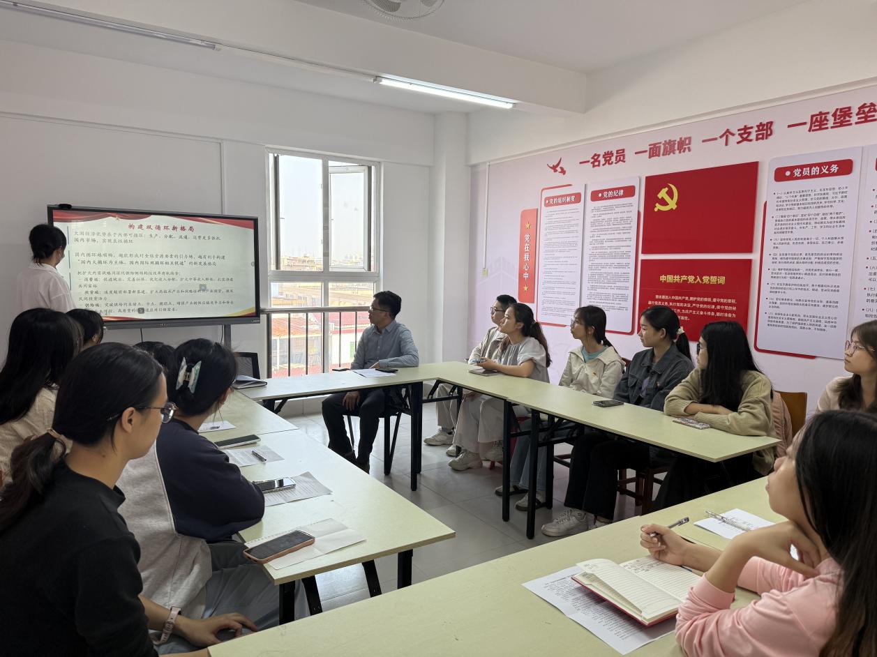 最后,在与学生党员互动交流时,刘文基指出《习近平谈治国理政》第五卷集中体现了马克思主义中国化时代化的最新成果,深刻揭示了“两个确立”的决定性意义。他勉励青年党员要深刻把握中国式现代化的内涵,自觉将学习成果转化为投身强国建设、民族复兴的实际行动。刘文基结合财政学专业特点,强调党员要加强理论学习与写作能力培养,通过研读党的政策文献提升综合素养;同时学院将持续关注学生发展需求,做好就业、升学等方面的支持与服务。他鼓励党员积极建言献策,发挥先锋模范作用,并提议适时组织开展红色教育基地实践学习,进一步强化党性教育。