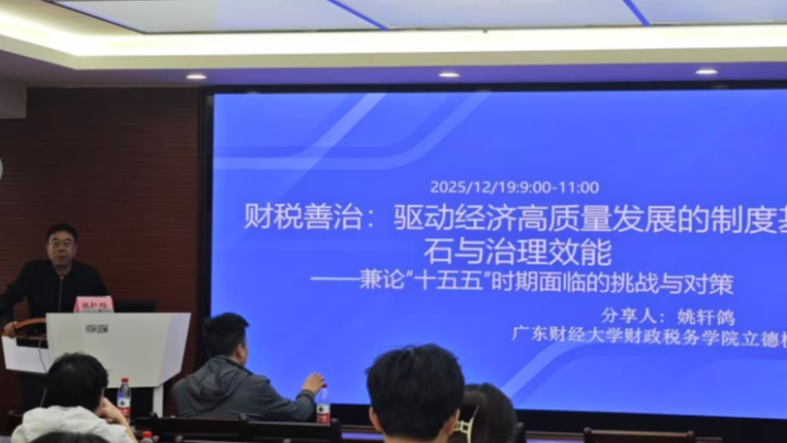12月12日,三亚学院自贸港国际法学院特聘教授、中国财税法学研究会理事姚轩鸽教授应邀来院,作题为“财税善治驱动经济高质量发展的制度基石与治理效能”的专题讲座。讲座由学院院长助理葛立宇副研究员主持,学院50余名研究生参加。